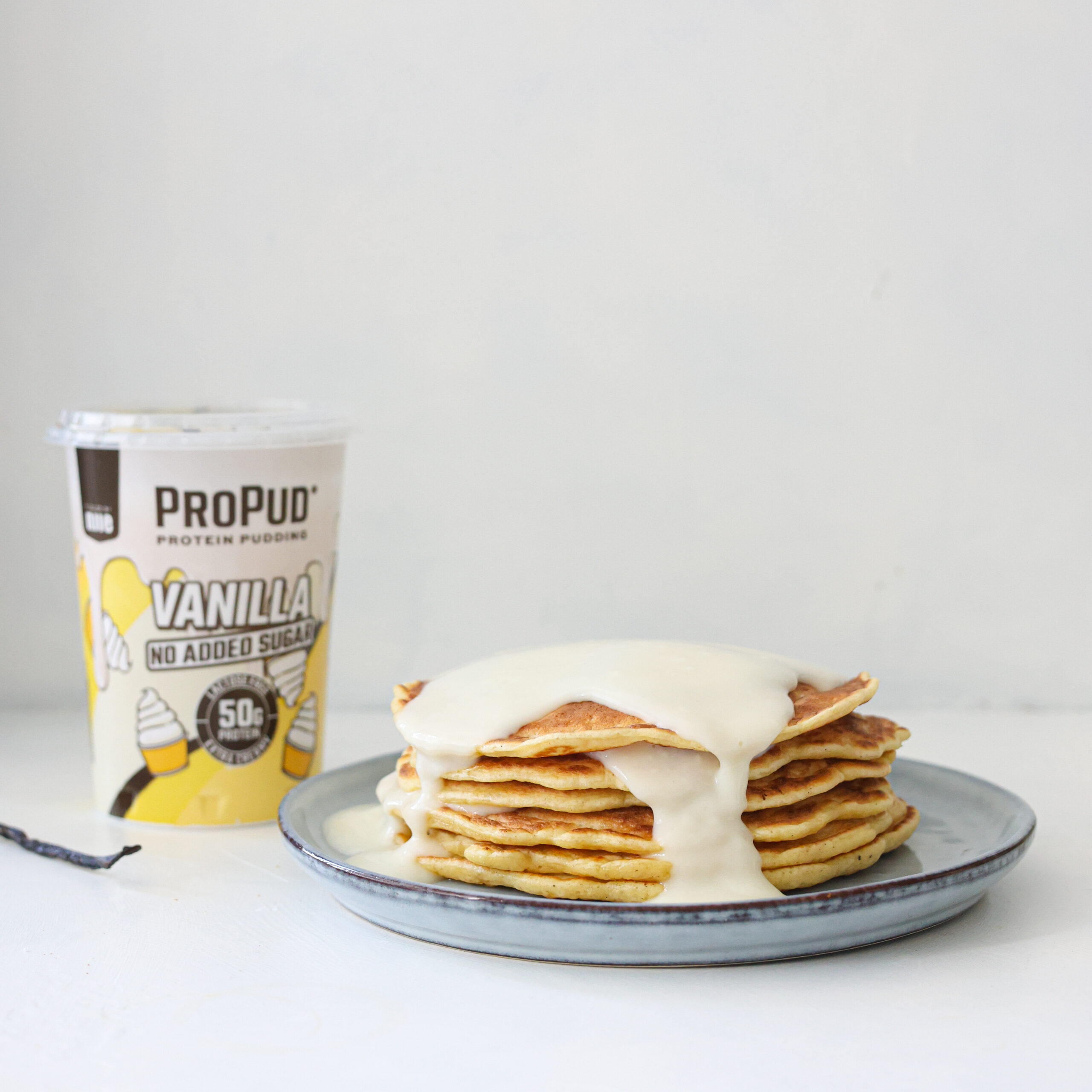 Mix the oat flakes to flour and mix all the dry ingredients in a bowl. Mix the other ingredients in another bowl and then mix them together. Fry 5–6 small pancakes over medium heat in some oil. Serve the pancakes with whipped coconut cream and blueberries
